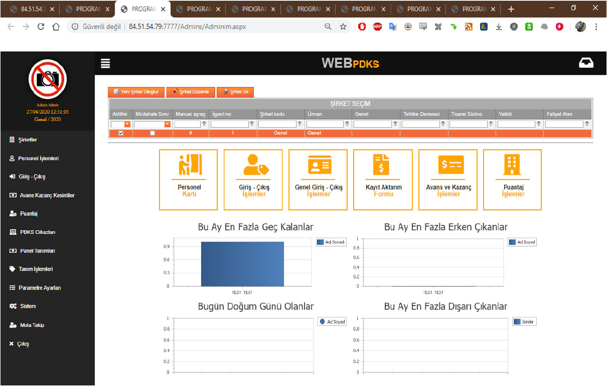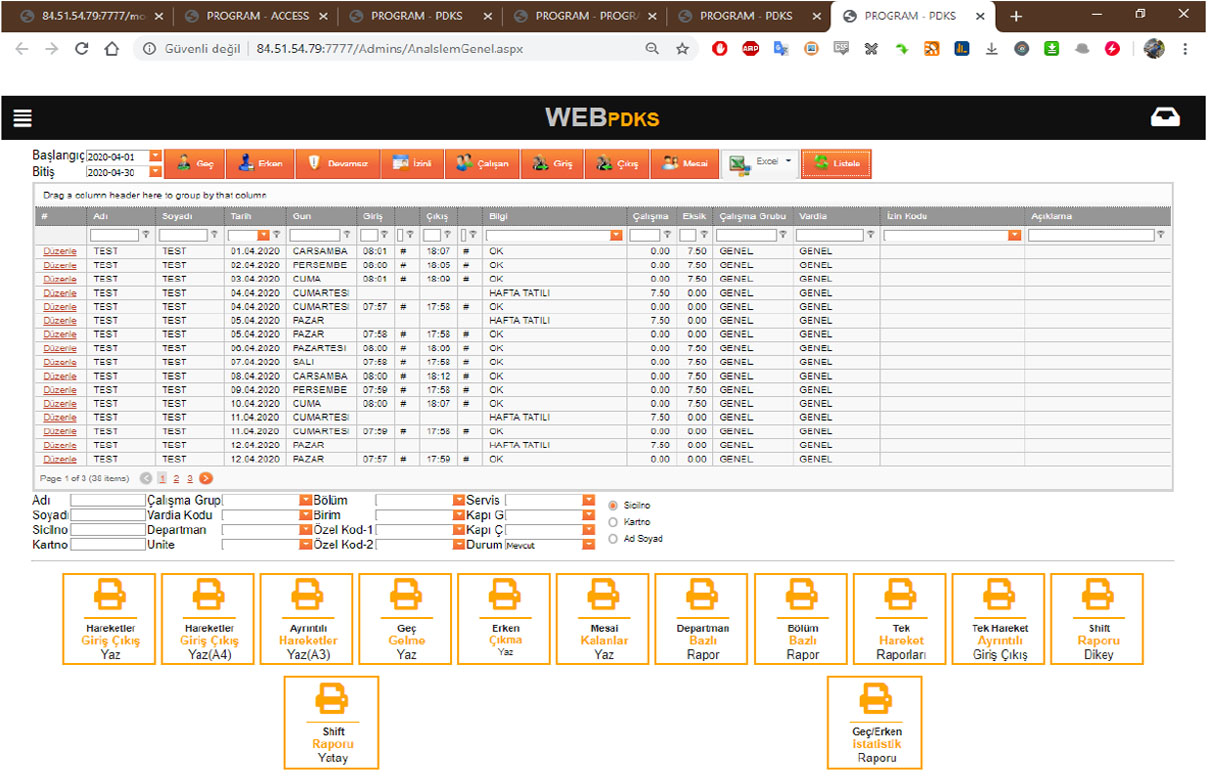 Cloud Web Tabanlı PDKS Programı yüksek güvenlikli ve kapasiteli sunucumuz üzerinde çalışan, gelişmiş ve teknolojik yazılımdır. Web Tabanlı PDKS Programımız üzerinde personelin fazla mesai sınırlandırmaları, yıllık izin takipleri ve geliştirilmiş raporları alınabilir.
